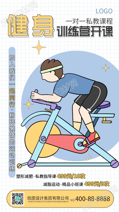 创意设计健身直播课预热直播招生宣传动感单车运动男生手机海报