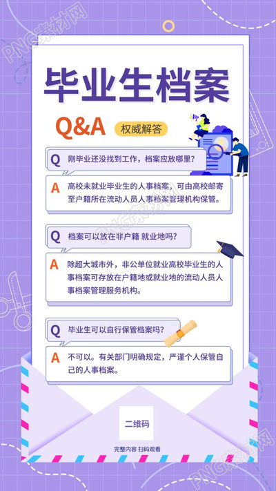 紫色小格子毕业生档案手机海报