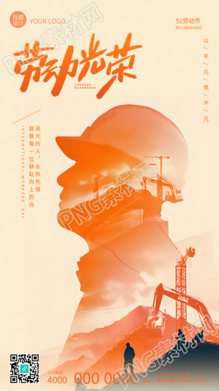 橙色背景五一劳动节向各行业致敬宣传海报图片素材