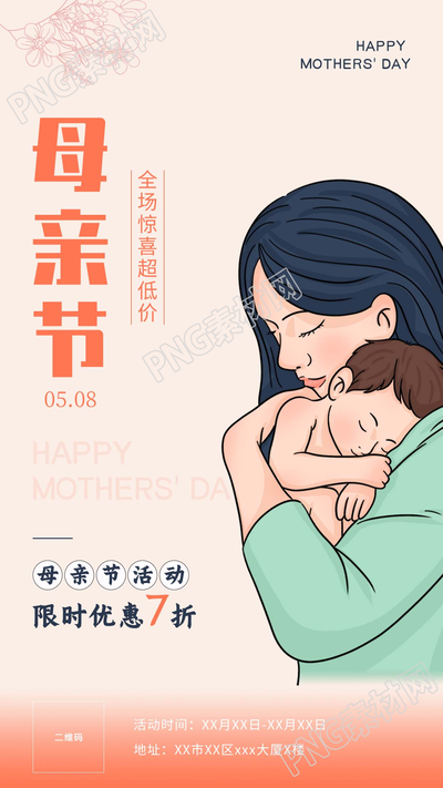 母亲节温馨手拉手礼包派送营销宣传活动手机海报