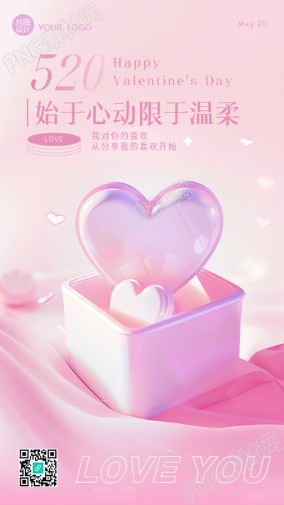 520情人节爱心礼盒创意手机海报