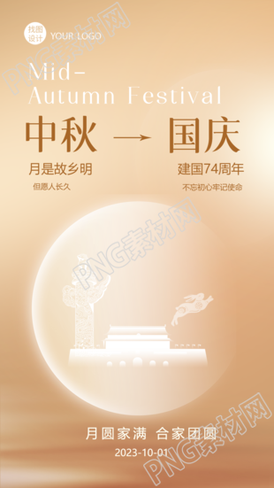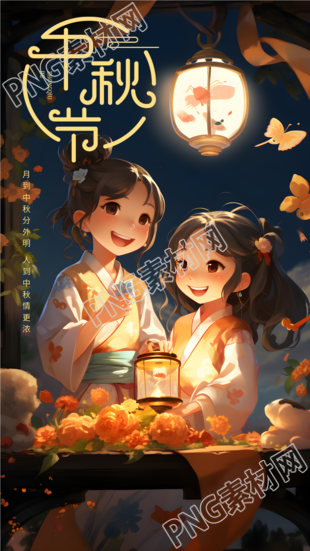 古典中国风月满中秋活动促销宣传月亮孔明灯玉兔手机海报