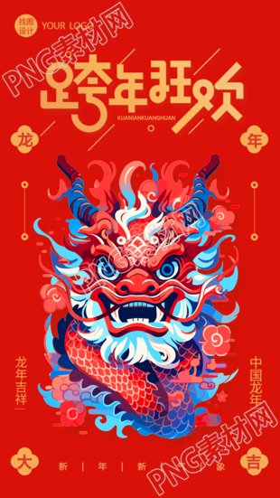 庆元旦迎新年虎年舞狮卡通祝福海报