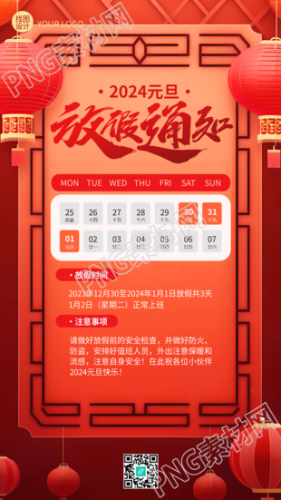 新年元旦仙鹤祥云扇子对联国风手机海报
