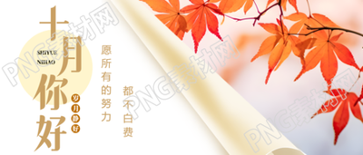 创意卷轴红枫叶实景遇见十月微信公众号首图