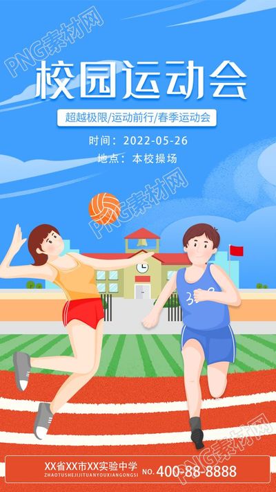 校园运动会操场卡通宣传手机海报
