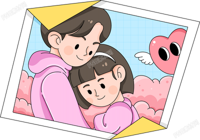 甜蜜情侣相拥合影相片图片卡通手绘免抠素材
