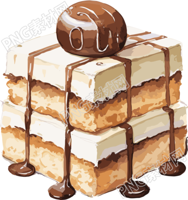 水彩风格浓重笔触的蛋糕插画