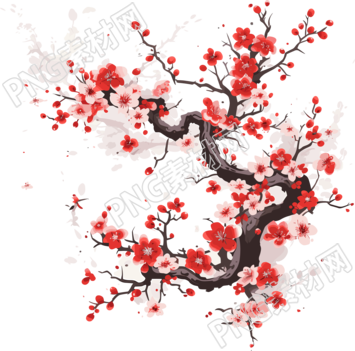 中国风松树山脉悬浮枝叶水墨插画白底图