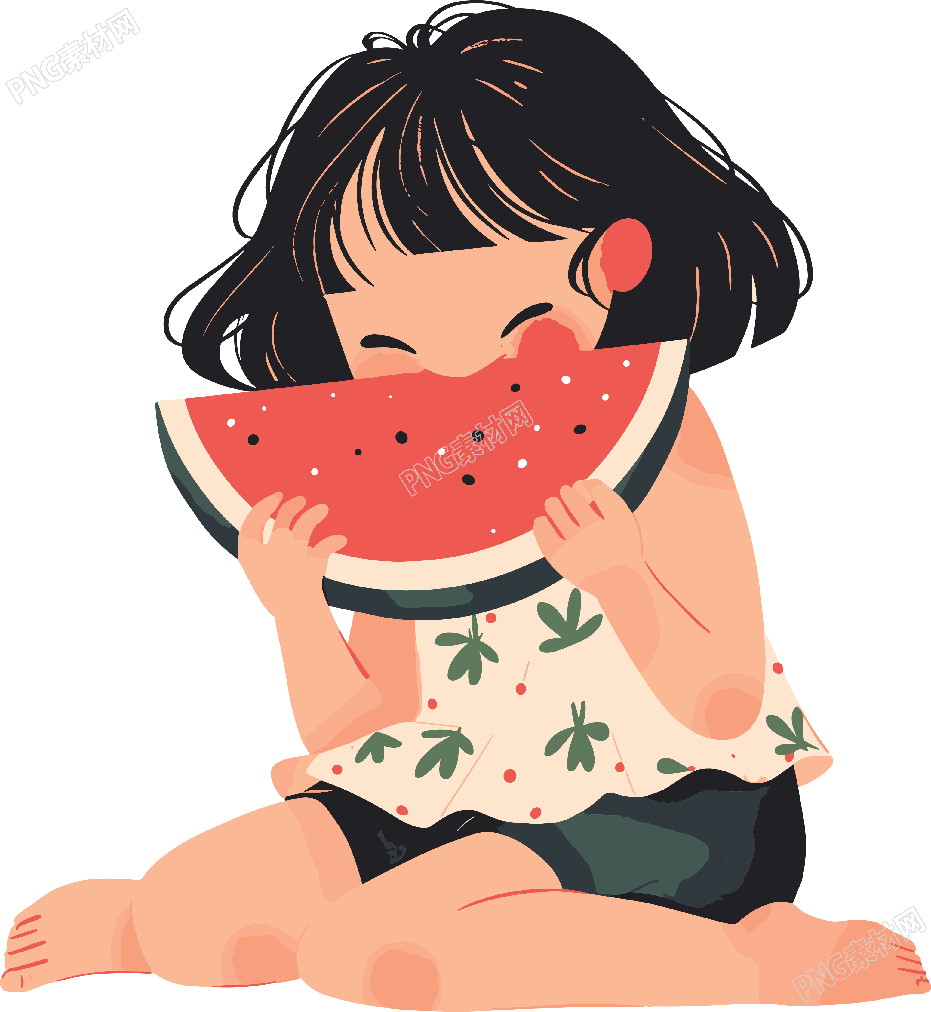 吃西瓜插画PNG素材
